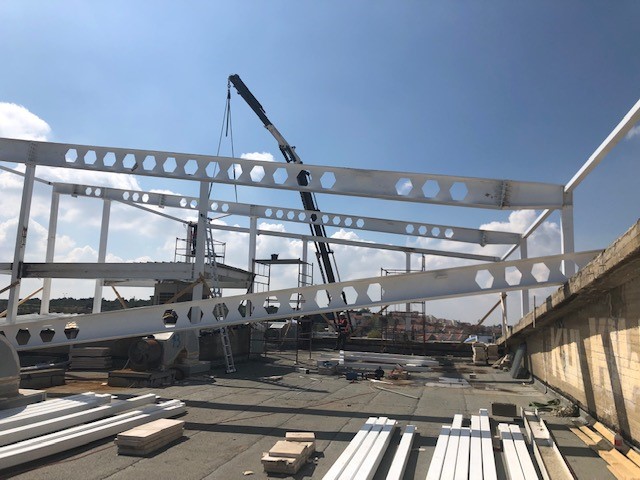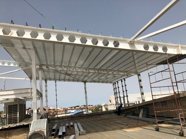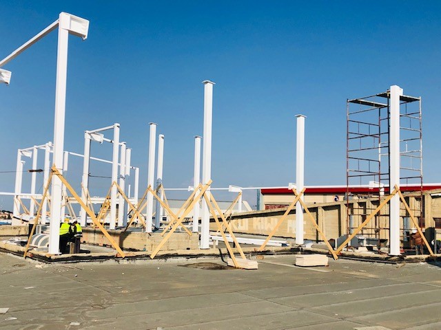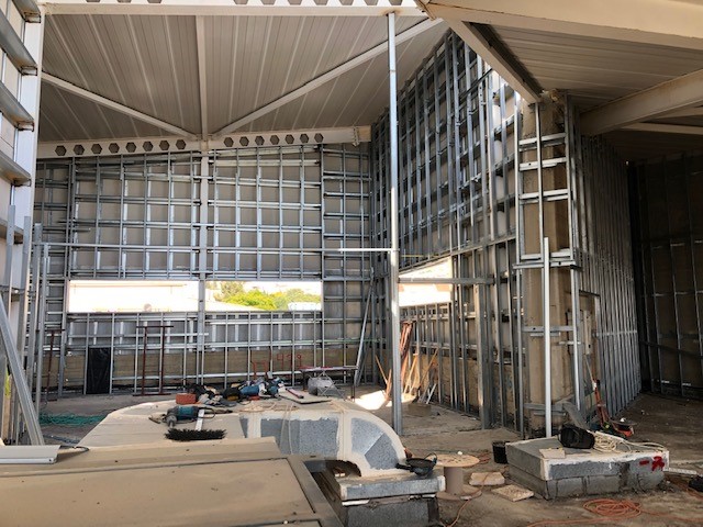 במסגרת העבודות, הועברו תשתיות חשמל, מים וצנרת להעברת חיווט מולטימדיה ואינטרנט. נבנה מבנה היקפי בשיטת בניה מהירה, הכוללת עמודי תמך, וביניהם קירות גבס המיועדים לחיפוי חיצוני (עמידים גם בתנאי רטיבות), המבנה רוצף ברצפת פרקט המותאמת לשימוש מוגבר כגון חדרי כושר.